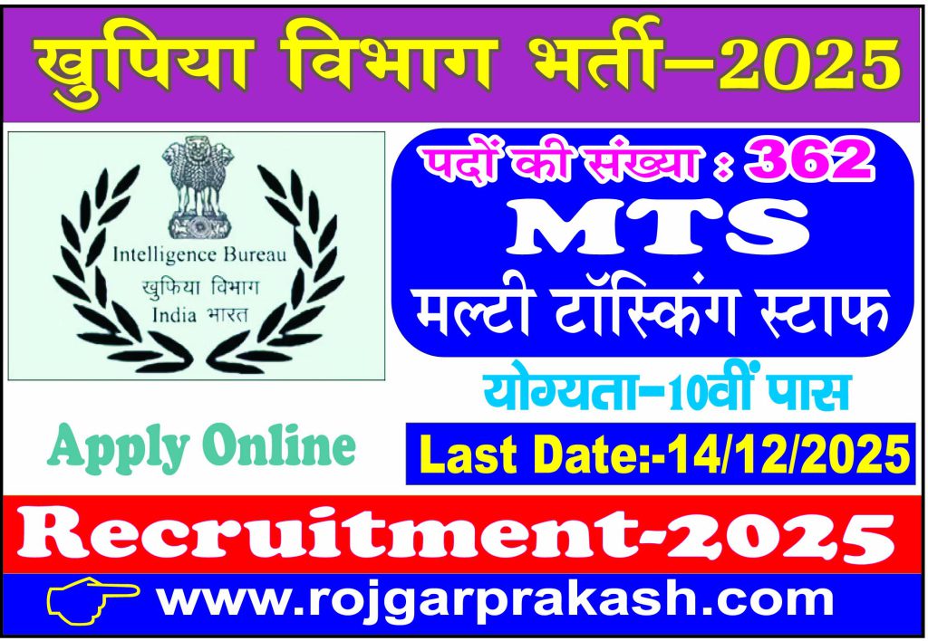 IB (MTS) Recruitment-2025 : Post-362, Apply Online