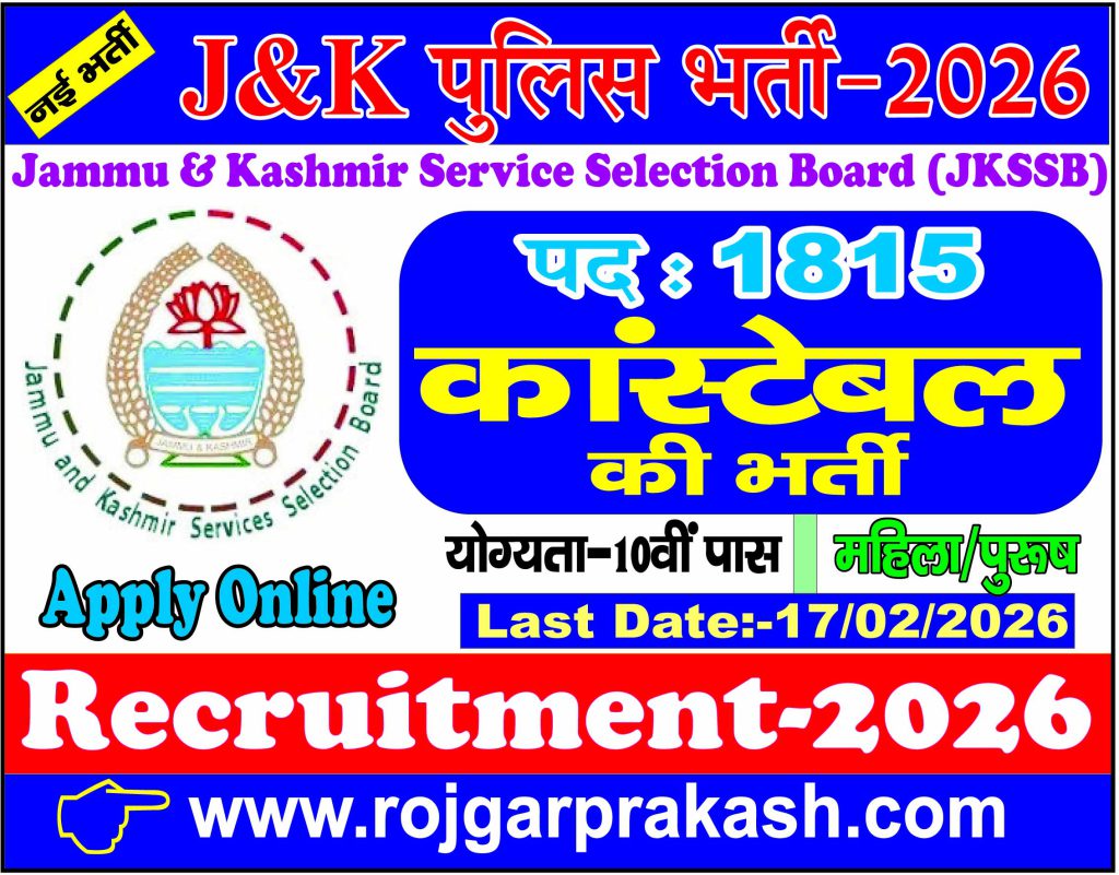 JKSSB Police (Constable) Online Form-2026 Post-1815 : Apply Online
