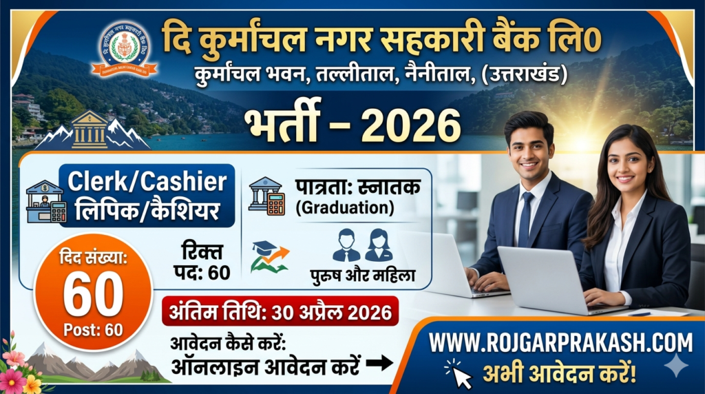 Kurmanchal Nagar Sahkari Bank Clerk Recruitment 2026: If you are preparing for bank jobs, then there is an important update for you. The Kurmanchal Nagar Sahkari Bank Limited has released an official notification for the recruitment of Assistant Grade-II (Clerk/Cashier) posts. The Kurmanchal Nagar Sahkari Bank Clerk Vacancy 2026 Notification has been released on 5 April 2026, and the online applications are invited from 6 April to 30 April 2026. The eligible candidates can apply online from the website kurmanchalbank.bank.in or the direct link given below. This is a good opportunity for graduates who are looking for a stable job in the banking sector, especially in Uttarakhand. The bank is a well-established urban cooperative bank with a strong presence and multiple branches across the state, and now it is inviting online applications from eligible candidates.