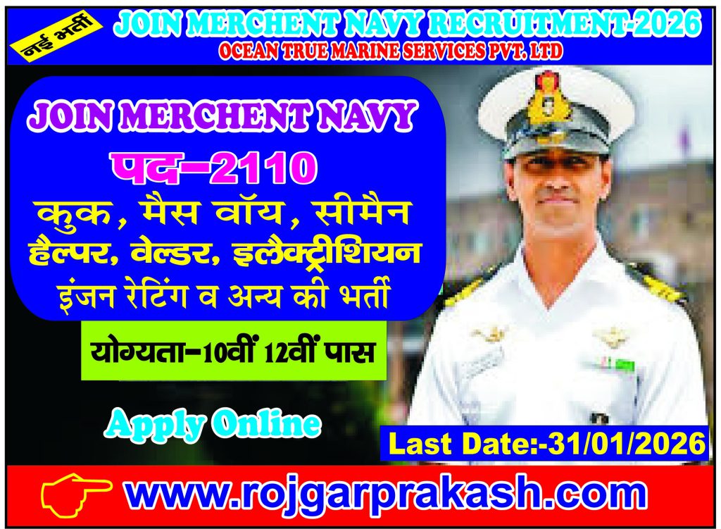 Short Information: Application Are Invited Join Merchant Navy Recruitment-2026 For All Over India, All Eligible Candidates Apply For Join Merchant Navy New Vacancy-2026 By Online Mode, A Candidate Will Be Eligible To Get The Benefit Of Community Reservation Only In Case Where The Particular Caste To Which The Candidate Belongs, Is Included In The List Of Reserved Communities Issued By The Central Government, One Eyed Candidates And Partially Blind Candidates Who Are Able To Read The Normal Question Paper Applicable For All The Candidates With Or Without Magnifying Glass And If Such Candidate Wish To Write Indicate The Answer With The Help Of Magnifying Glass, Then He Will Be Allowed To Use The Magnifying Glass In The Examination Hall And Will Not Be Entitled To A Scribe. Such Candidates Will Have To Bring Their Own Magnifying Glass To The Examination Hall, Age Limit & Education Qualification More Details Given Below