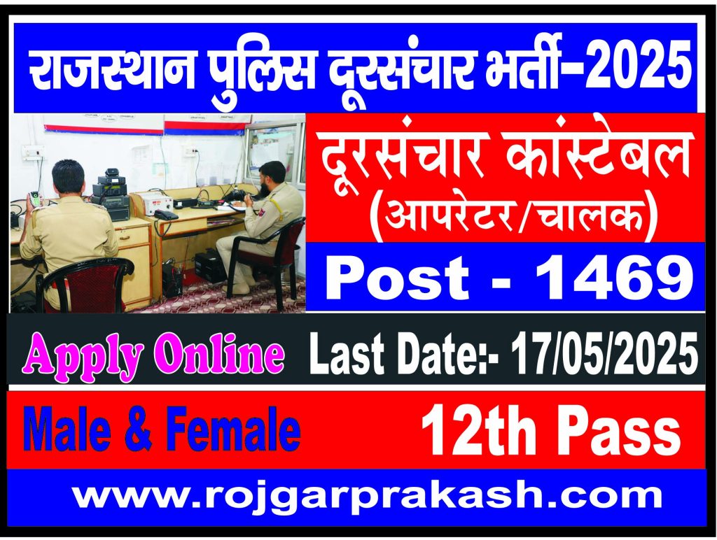 | Rajasthan Police Constable Telecommunication Constable (Operator/Driver) Recruitment-2025 : Vacancy Total : 1469 | |||||||