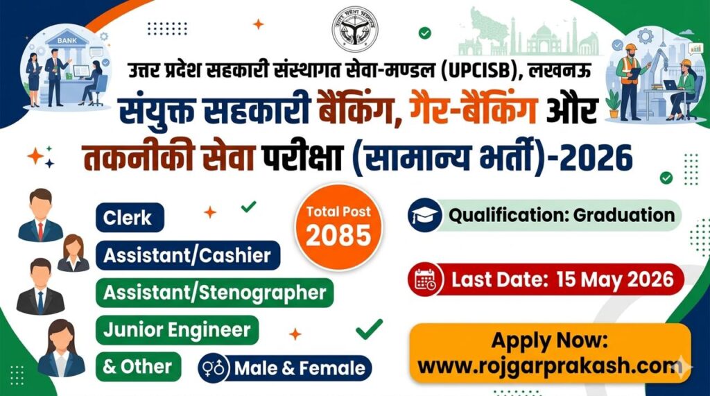 UPCISB, Recruitment-2026 : The U.P. Co-operative Institutional Service Board (UPCISB), Lucknow, has released the official notification for the Combined Co-operative Banking, Non-Banking and Technical Services Examination 2026. This recruitment includes multiple posts in cooperative banks and institutions across Uttar Pradesh. The UPCISB Recruitment-2026 Notification has been released on 13 April 2026, and the online applications are invited from 25 April to 15 May 2026. The eligible candidates can apply online from the website upcisb.upsdc.gov.in.