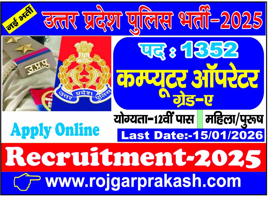 - UP Police (Computer Operator Grade-A) Recruitment-2025-26 : Post-1352 < Apply Online